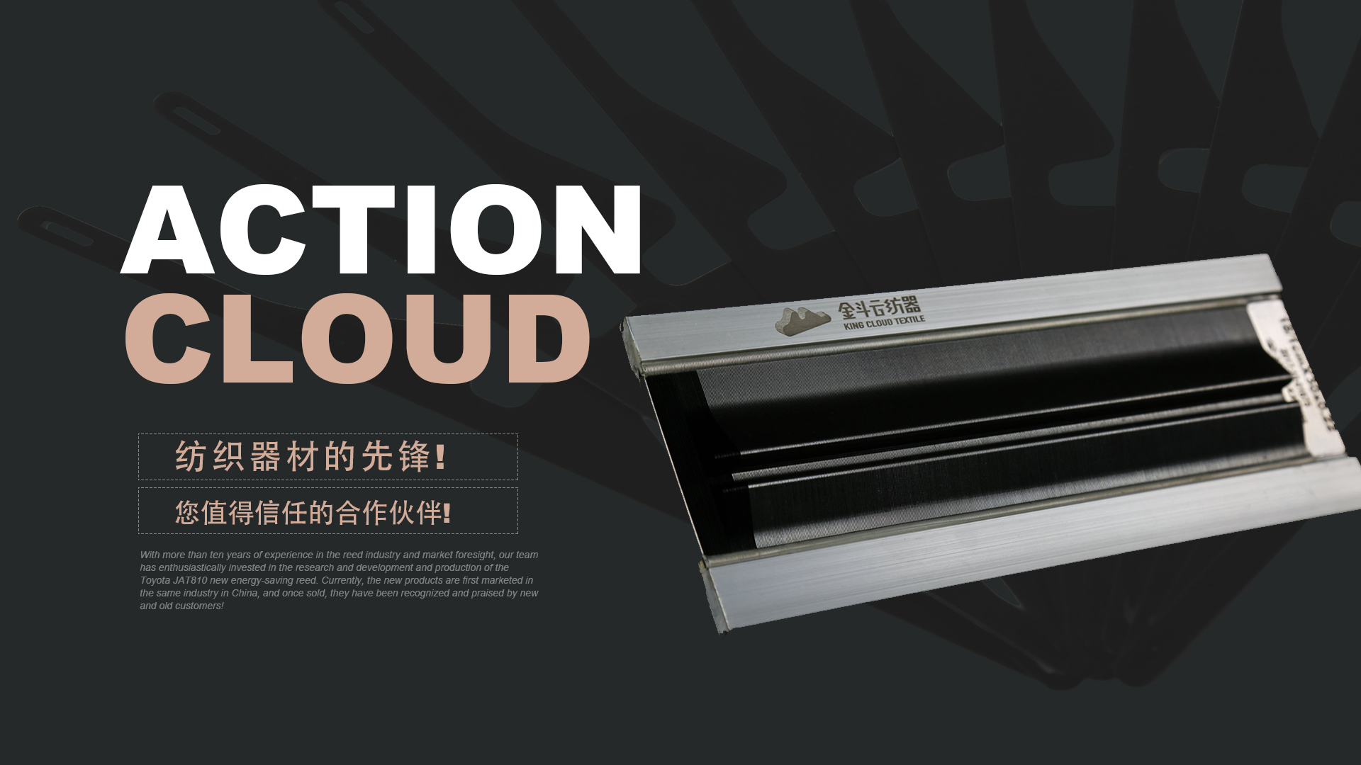 憑借十多年鋼筘行業(yè)經(jīng)驗(yàn)及對市場的前瞻性,我們團(tuán)隊(duì)滿懷熱情的投入到豐田JAT810新型節(jié)能鋼筘的研發(fā)和生產(chǎn)當(dāng)中,目前新產(chǎn)品在國內(nèi)同行業(yè)中先行上市銷售,一經(jīng)銷售就得到了新老客戶的認(rèn)可和好評!